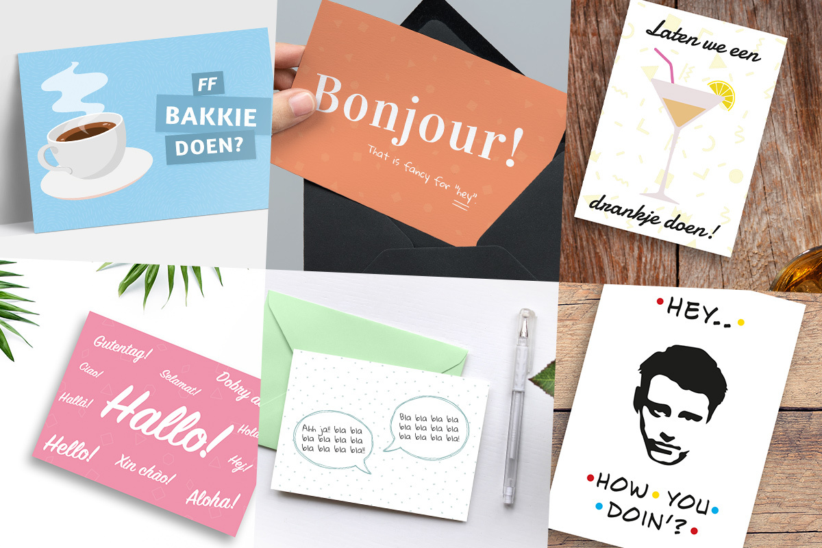 Faites savoir à l’un de vos proches que vous pensez à lui ou à elle. Ou que vous aimeriez partager un café en sa compagnie ou organiser une fête. Ces trois templates et designs s’y prêtent à merveille. Téléchargez-les et utilisez-les pour créer votre propre carte postale !