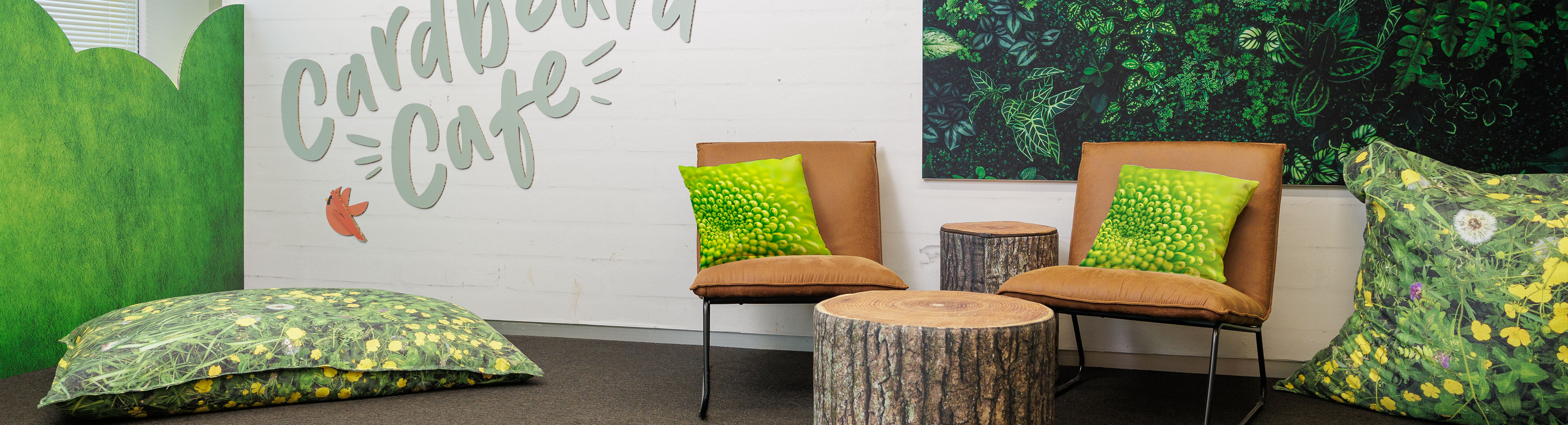 - Restaurant : utilisez des meubles lounge, coussins et poufs personnalisés pour créer un coin détente convivial où vos clients peuvent siroter un verre tranquillement.