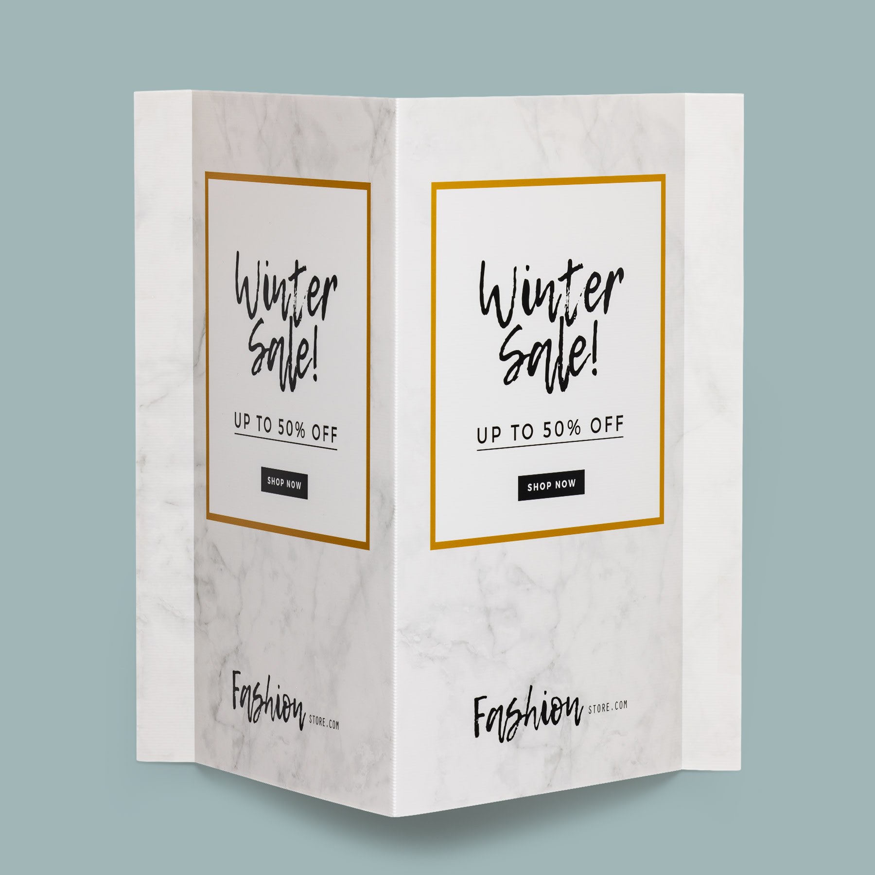 Tenslotte kun je ook prima een aanbieding wereldkundig maken via je vensters. Waarom geen zogenaamde makelaarsborden bestellen, met je boodschap in full color bedrukt op polypropyleen kanaalplaat? Raamborden zijn het middel bij uitstek om een verkoop aan te kondigen, maar je kan er net zo goed een actie op drukken. Deze makelaarsborden hebben we ook als tuinbord voor je klaarliggen, dat tegen het nodige Belgische weer bestand is.